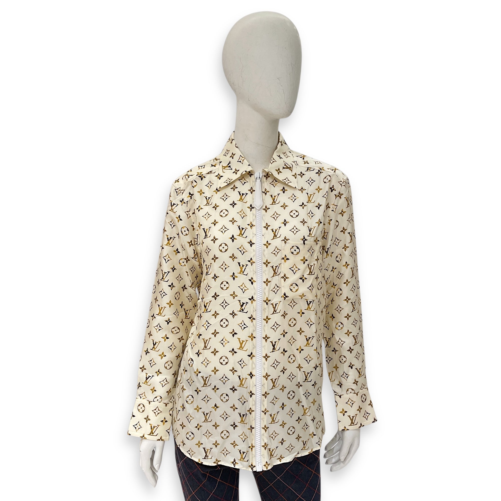 Brown Monogram Logo Silk All Over Zip Up 32 Multi-Color Ready-To-Wear