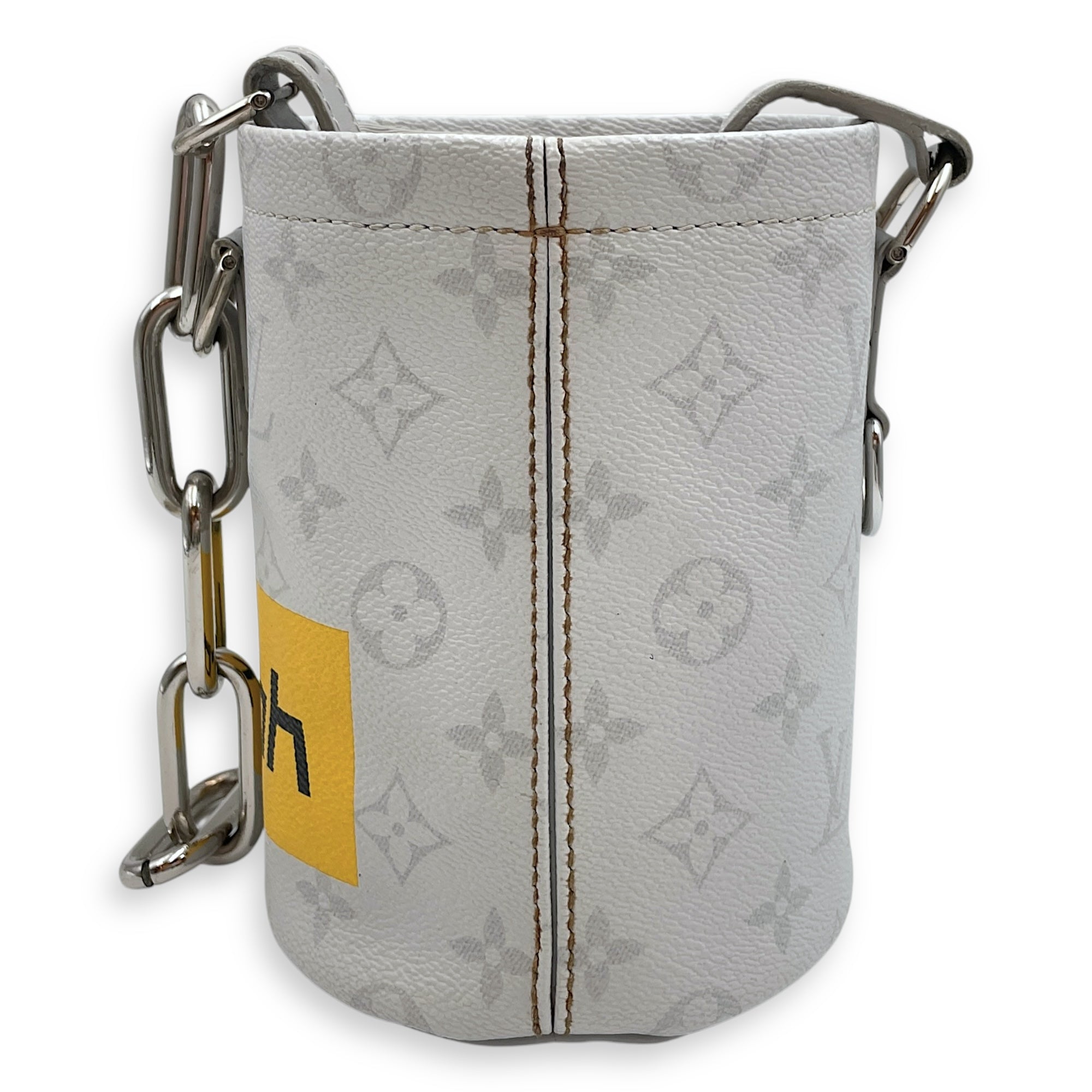 Chalk Grey Bucket Bag in Coated Canvas, Silver hardware
