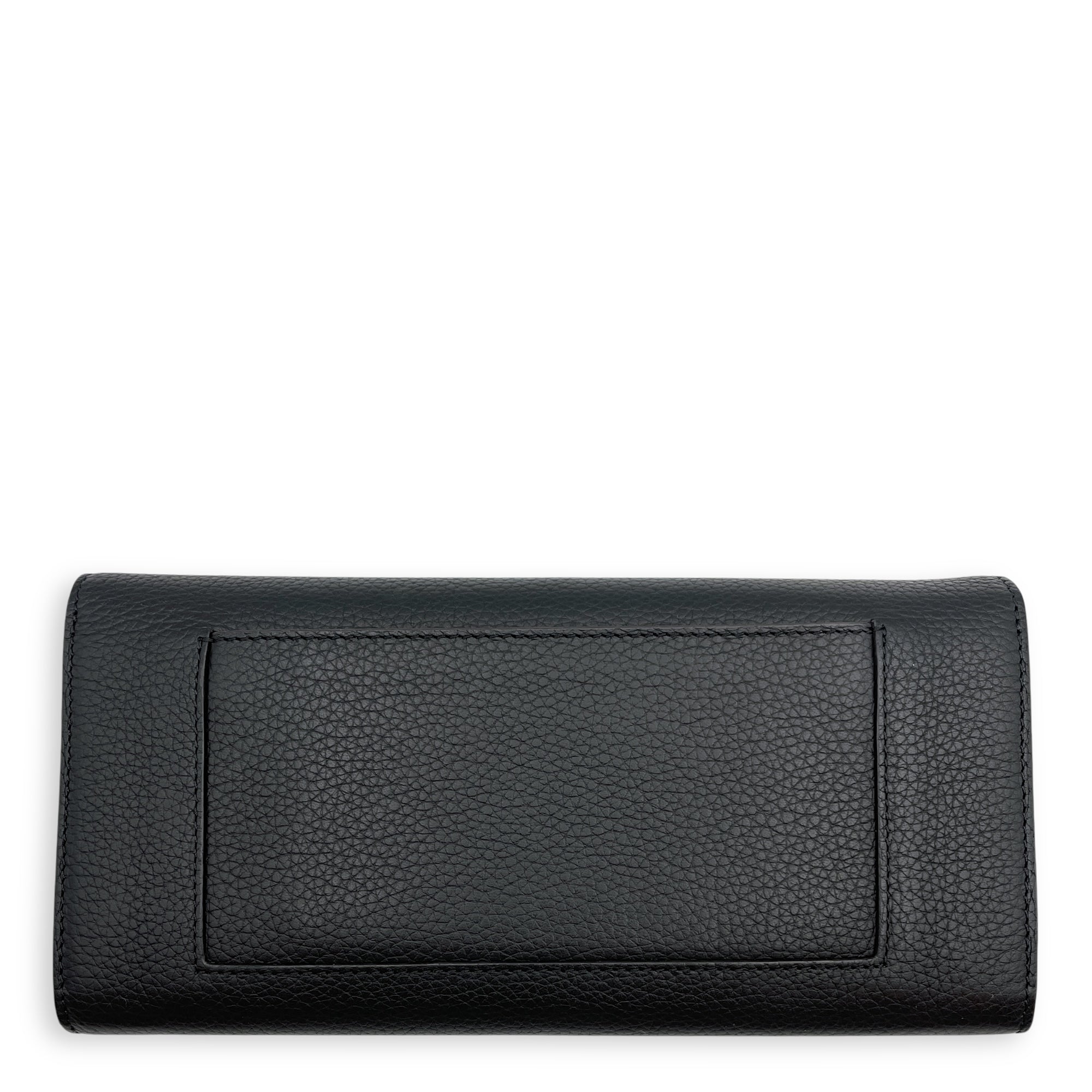 Multi Function Long Black Wallet in Calfskin, Silver hardware
