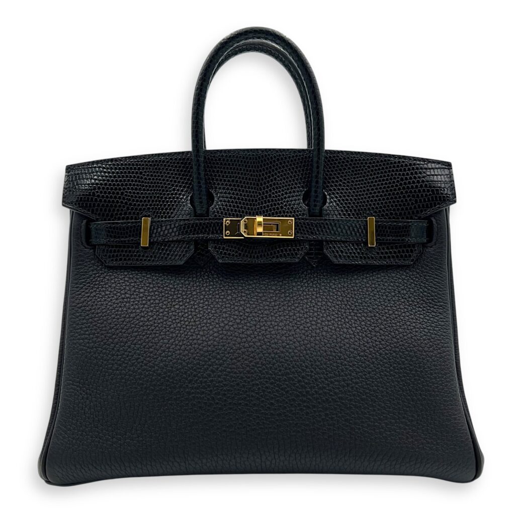 Birkin Touch 25 Noir Top Handle Bag in Togo & Lizard, Gold hardware